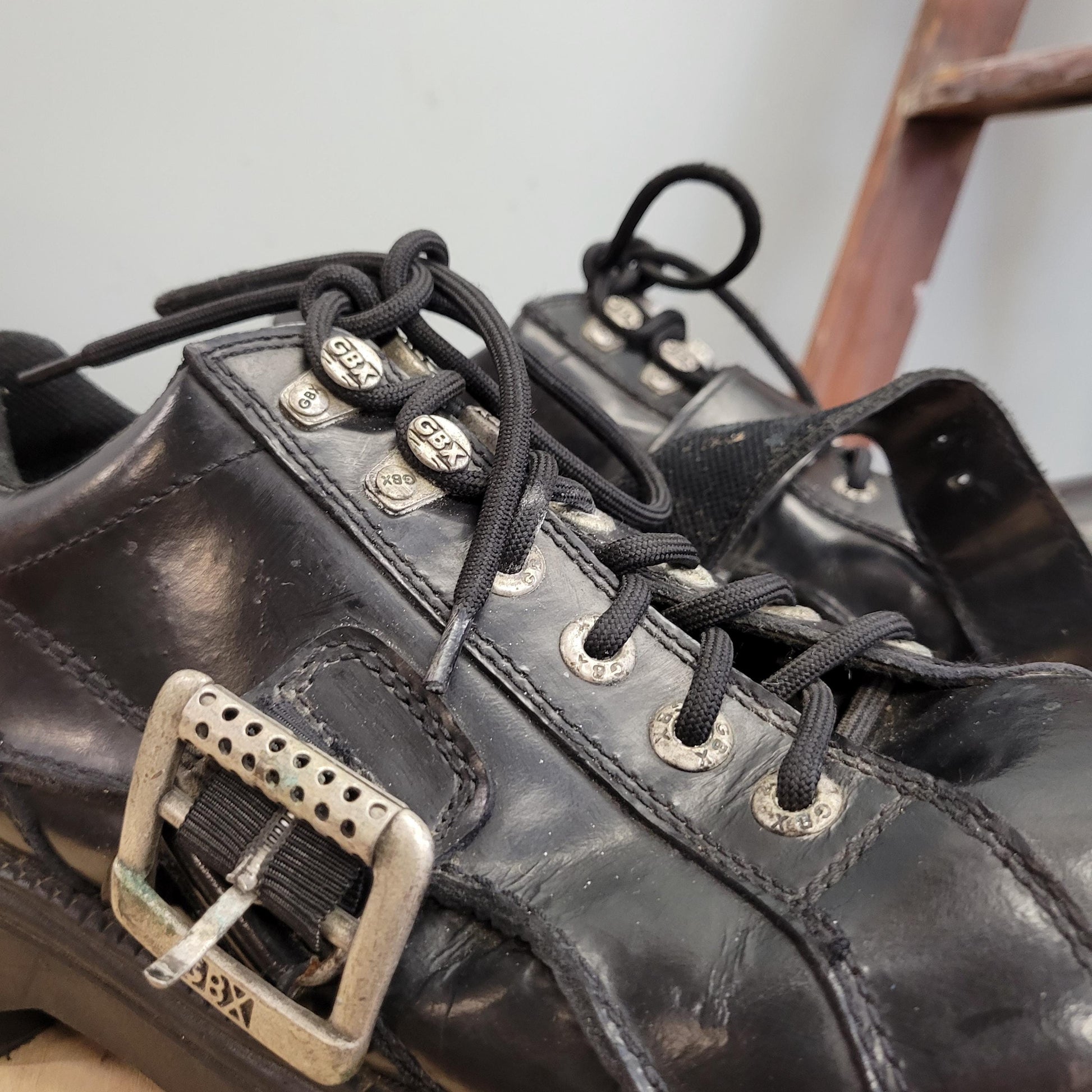 vtg 90s LEATHER BUCKLE Shoes // vintage GBX mens 12 usa dr martens style industrial goth chunky platform combat matrix style y2k alternative