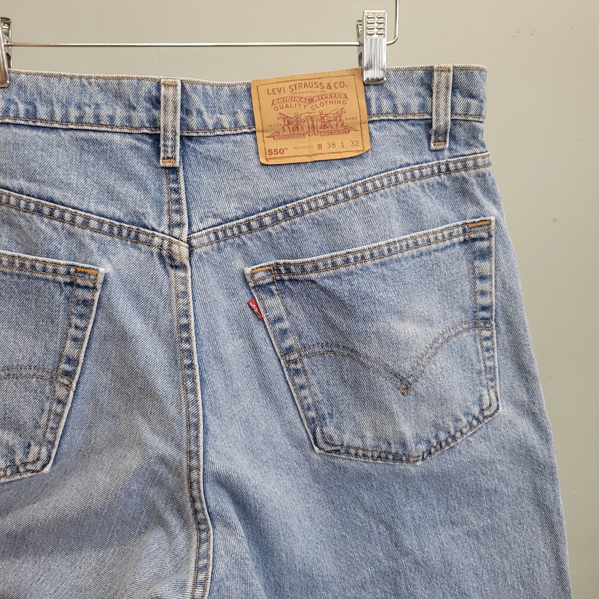 vtg 90s LEVI BAGGY JEANS // vintage 550 relaxed fit levi strauss 38 x 32 denim levis red tag usa y2k light wash mid high rise unisex jeans