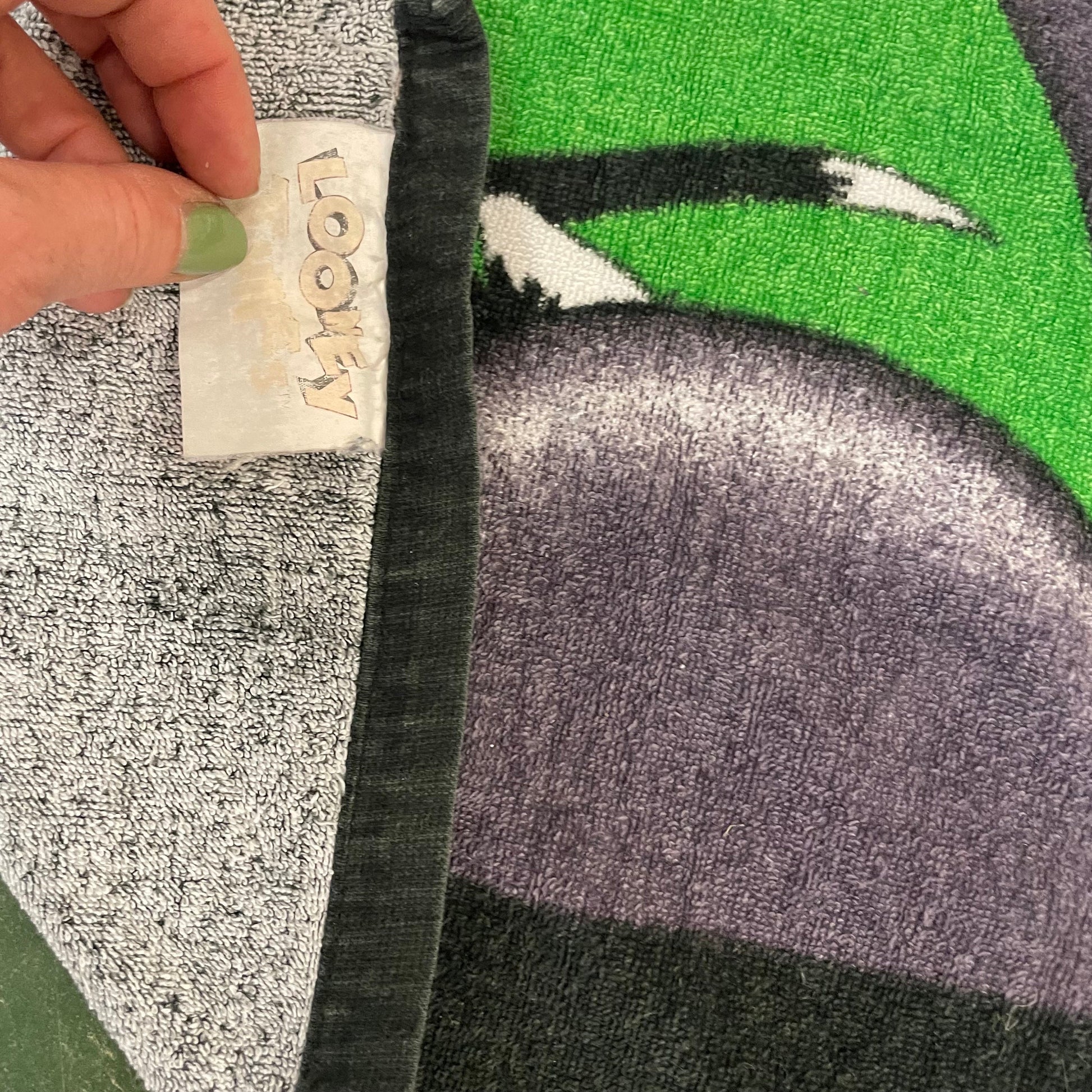 vtg 90s LOONEY TUNES TOWEL // vintage tweety & sylvester cartoon plush terrycloth beach towel bright vivid funny Y2K all over print fabric
