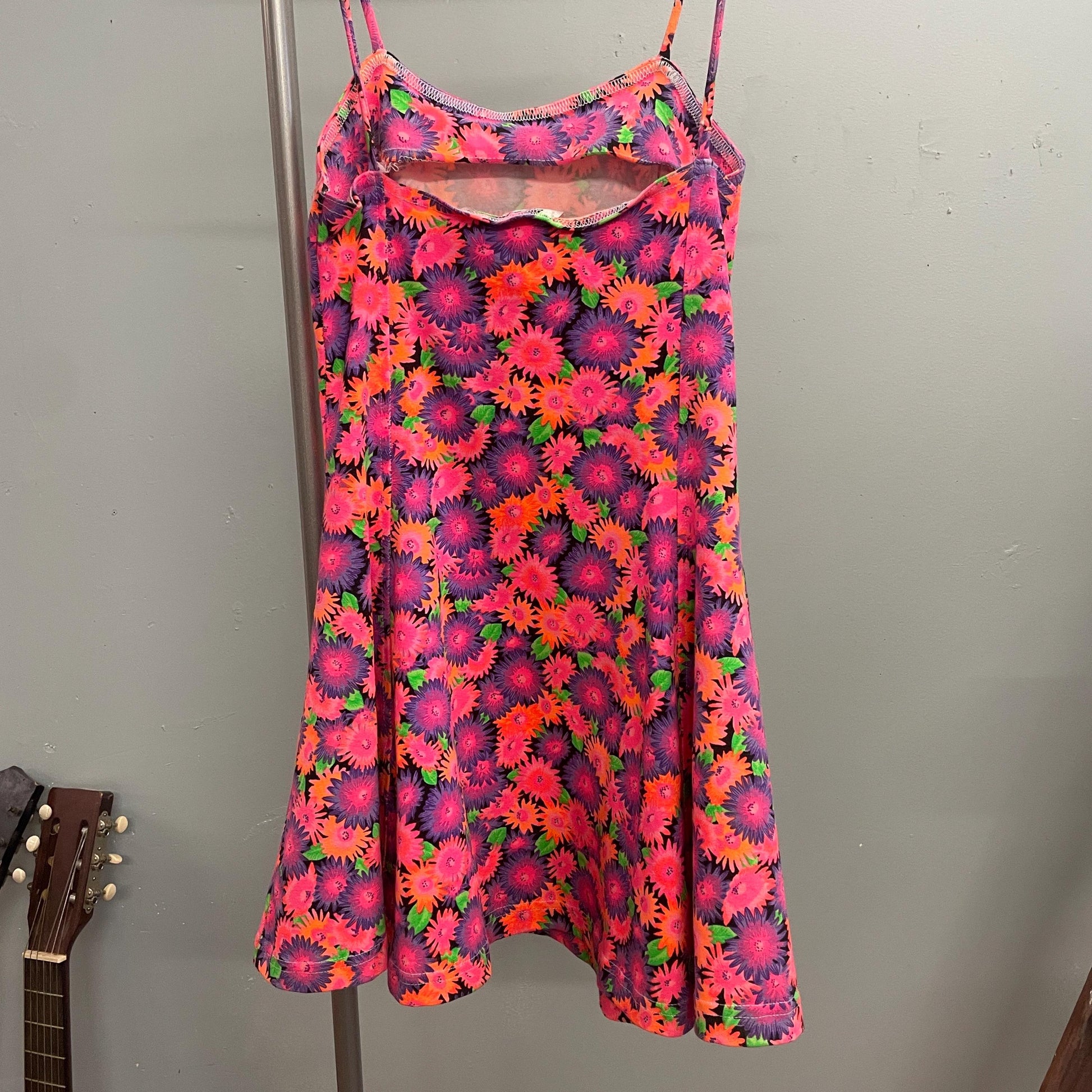 vtg 90s NEON FLORAL MINI dress // neon hot pink flower power twirly slinky spaghetti strap tank dress club dance fairy rave beverly hills