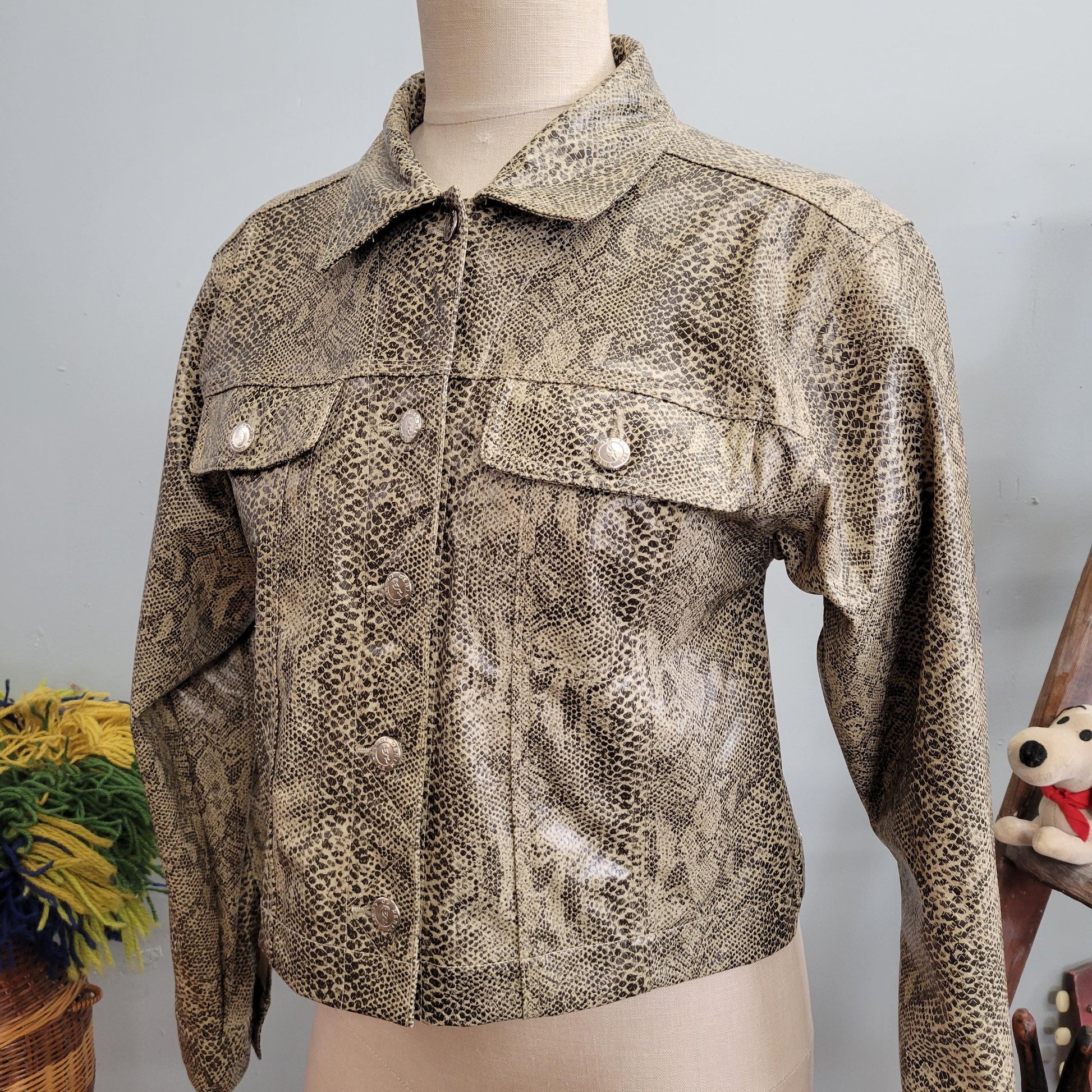 vtg 90s SNAKE SKIN JACKET // vintage spirit of denim usa large womens reptile vinyl faux leather pleather cropped y2k animal print 200s top