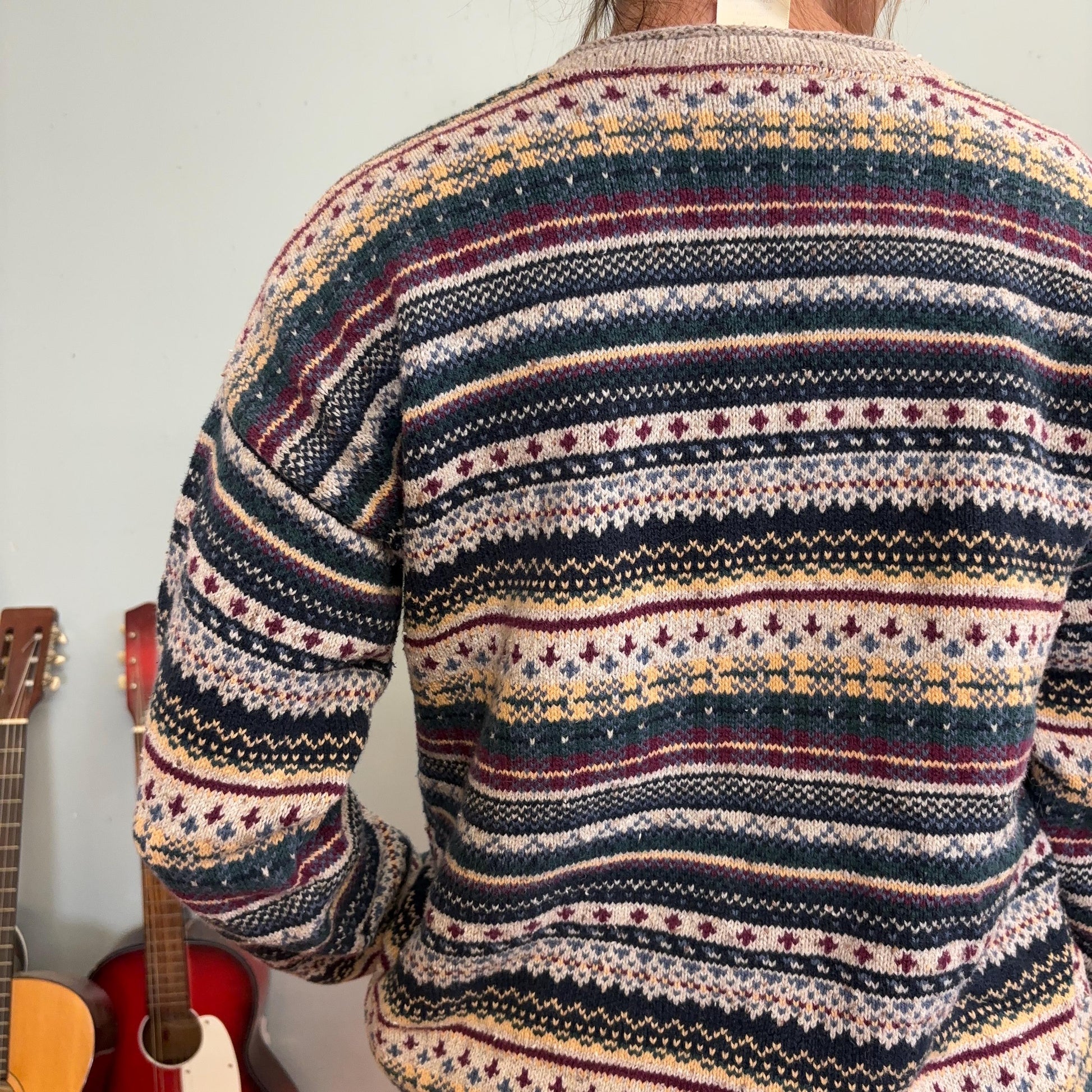 vtg 90s STRIPED PATTERNED SWEATER // vintage cozy soft cotton northern reflections preppy grunge slouchy fitted sweater boyfriend top autumn
