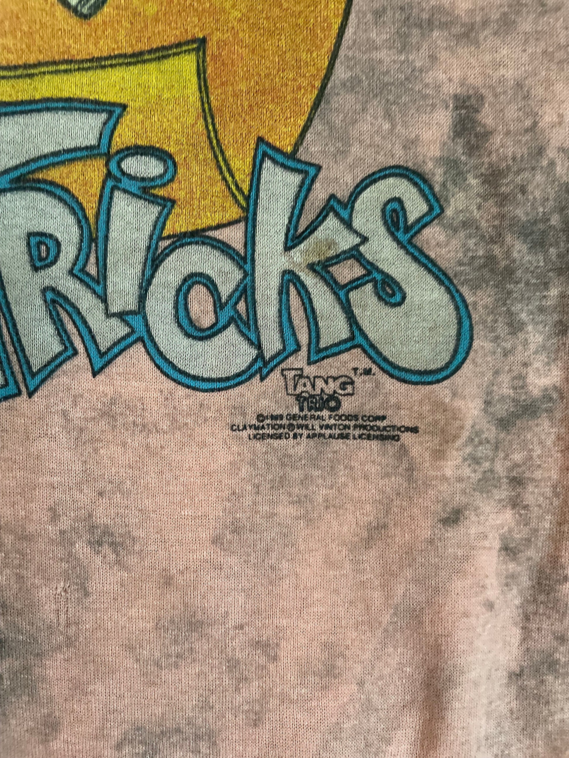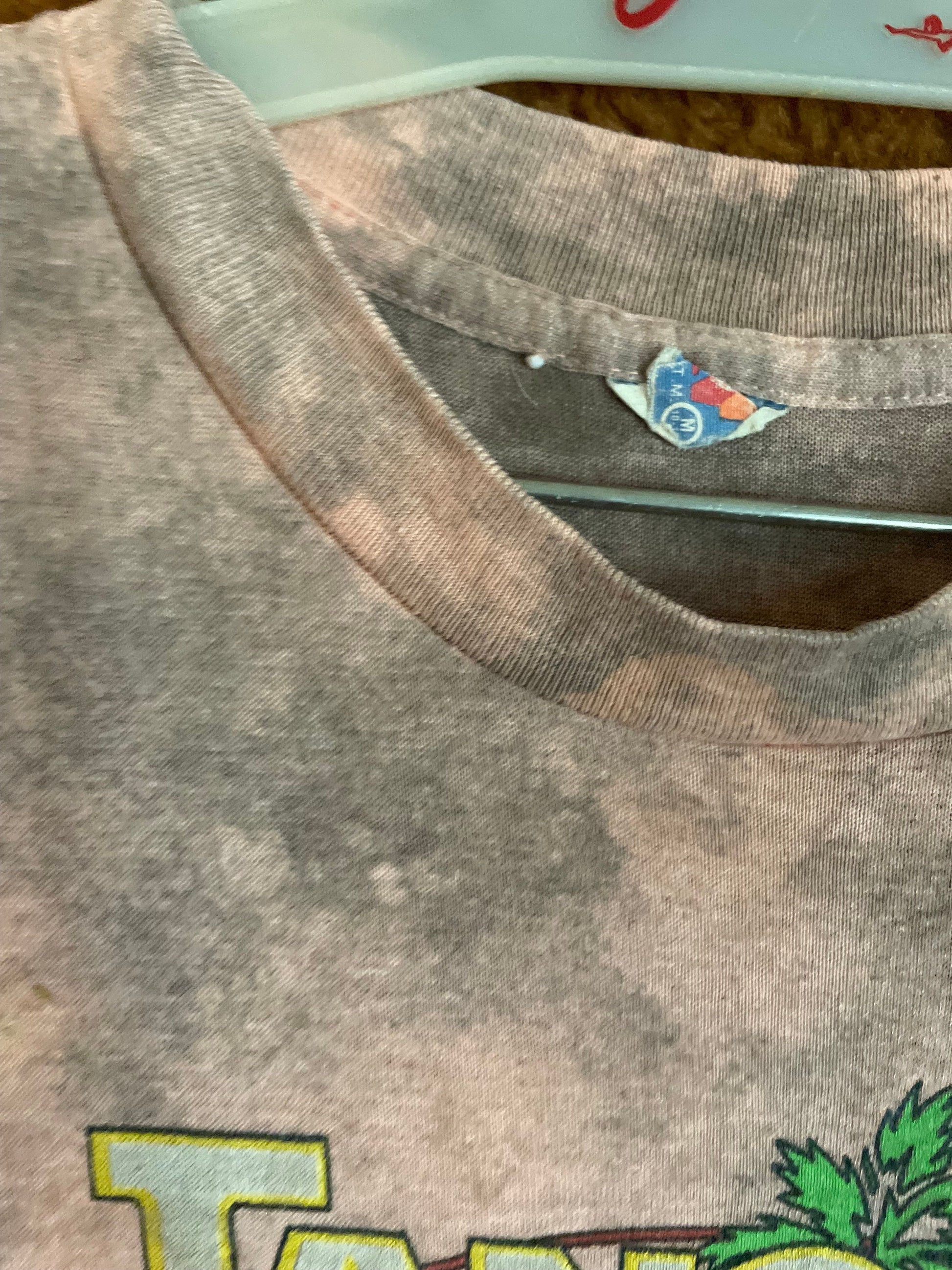 vtg 80s 90s TANG lip tricks skateboarding distressed graphic tee tie dye marbled paper thin crop baby tee pop art skater punk youth large