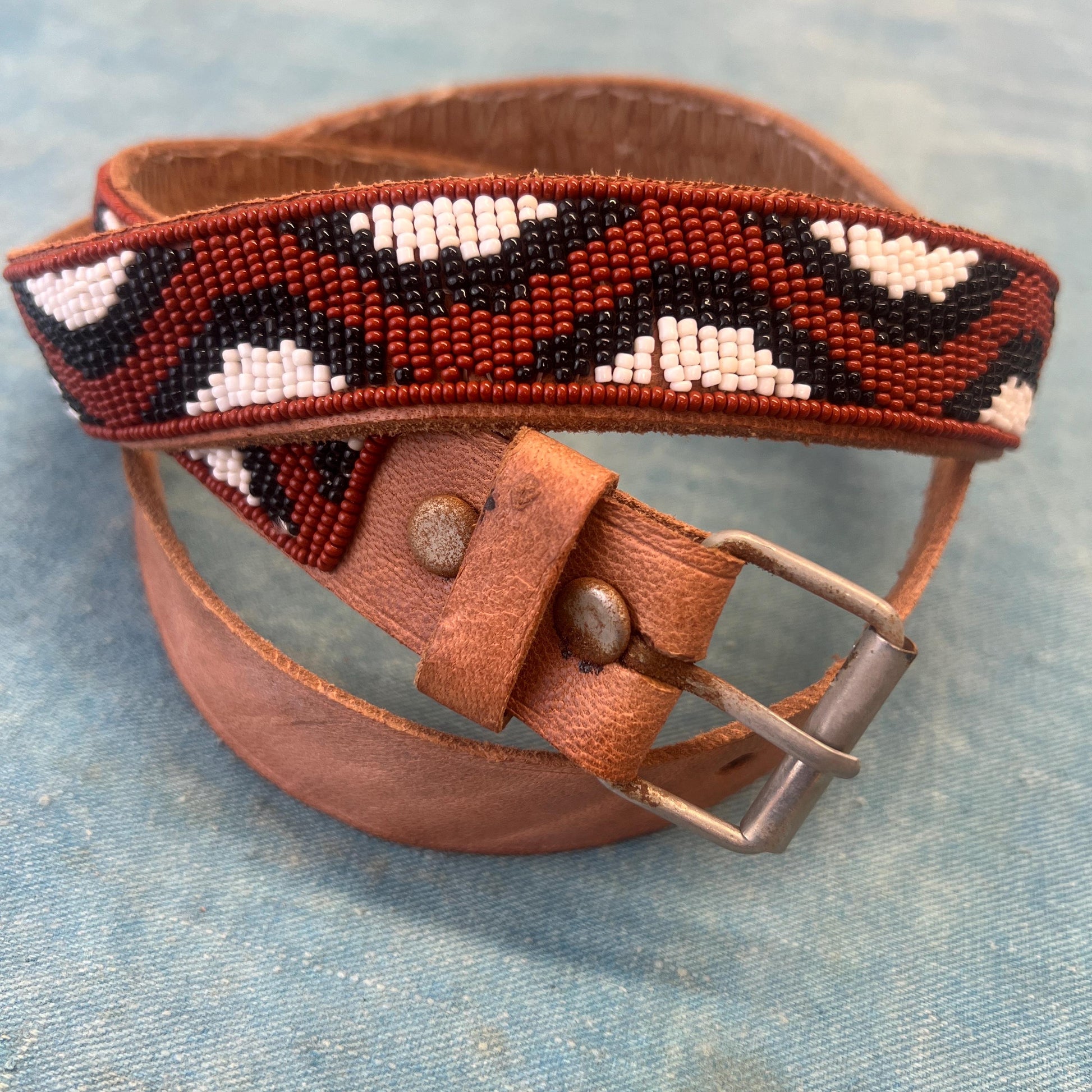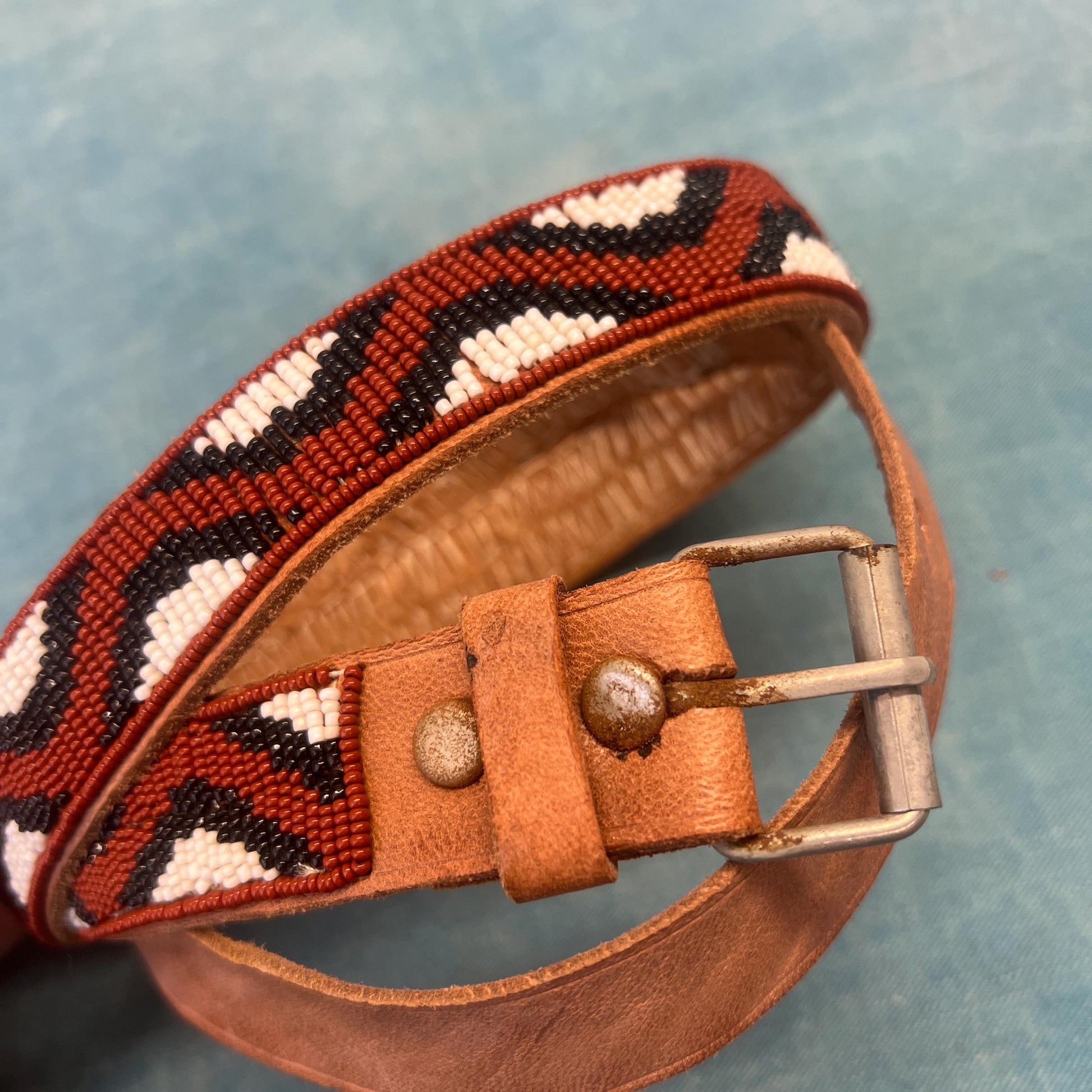 vtg HAND BEADED BELT // vintage snake pattern tan leather belt southwestern rustic bohemian hippie style accessories boho festival retro