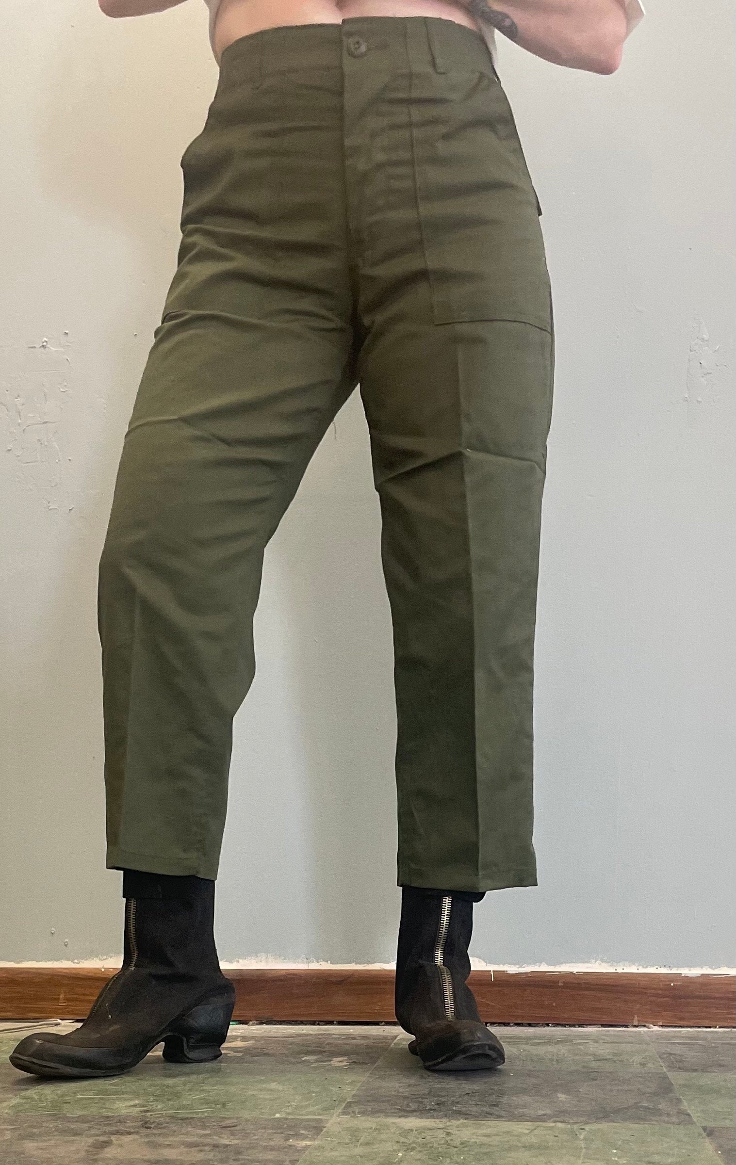vtg OG 507 UTILITY TROUSERS pants ꕤ ꕤ ꕤ 1981 short capri high waisted olive green military nos 80s fitted og 107 vietnam us army ꕤ 30 x 25