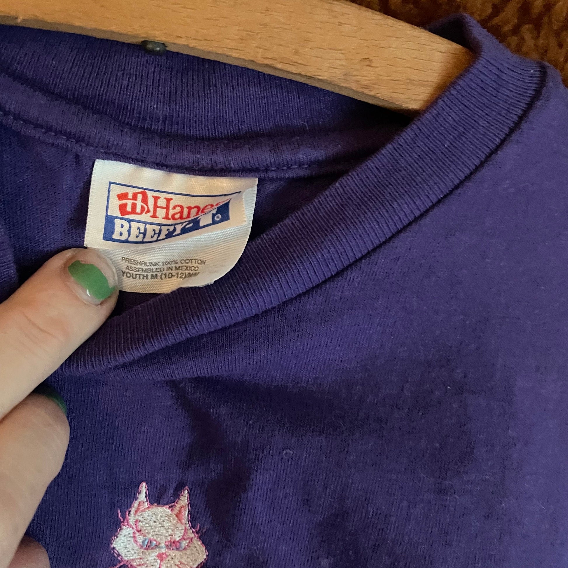 vtg Y2K 2000s WHITE ANGEL CAT shirt // vintage cap sleeve femme french cut baby tee fitted top skater mall rats purple t shirt brat summer