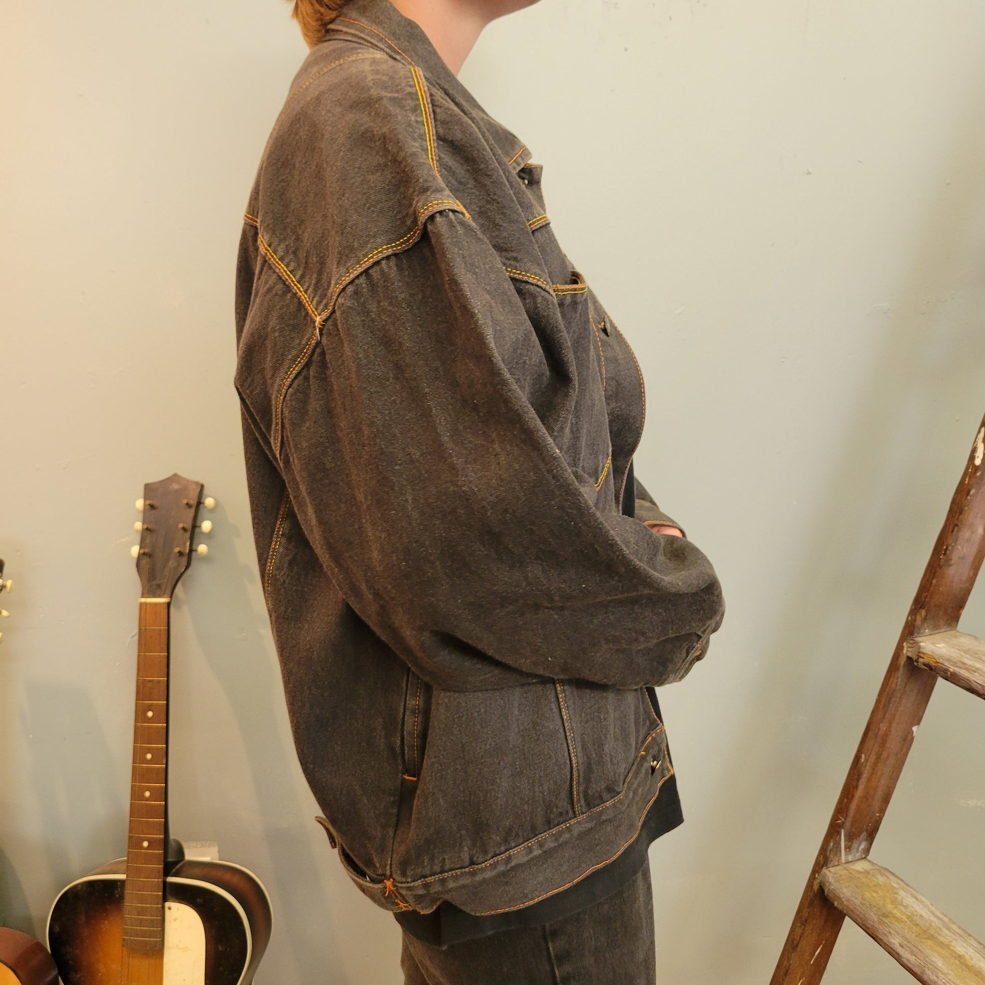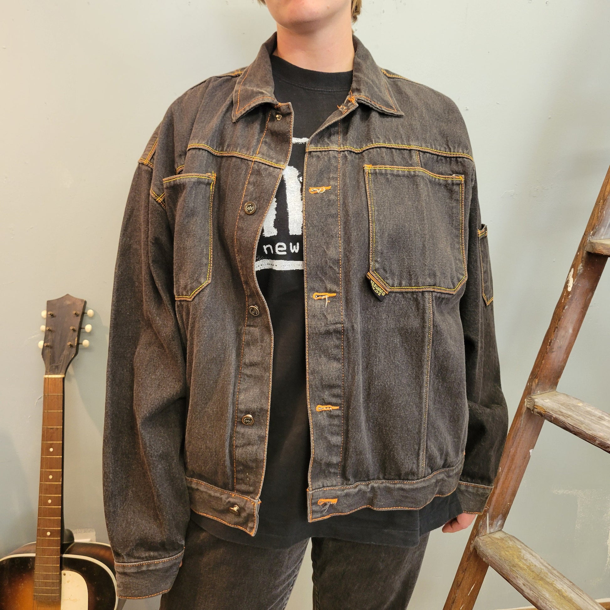 Vintage 90s grey black oversize denim coat